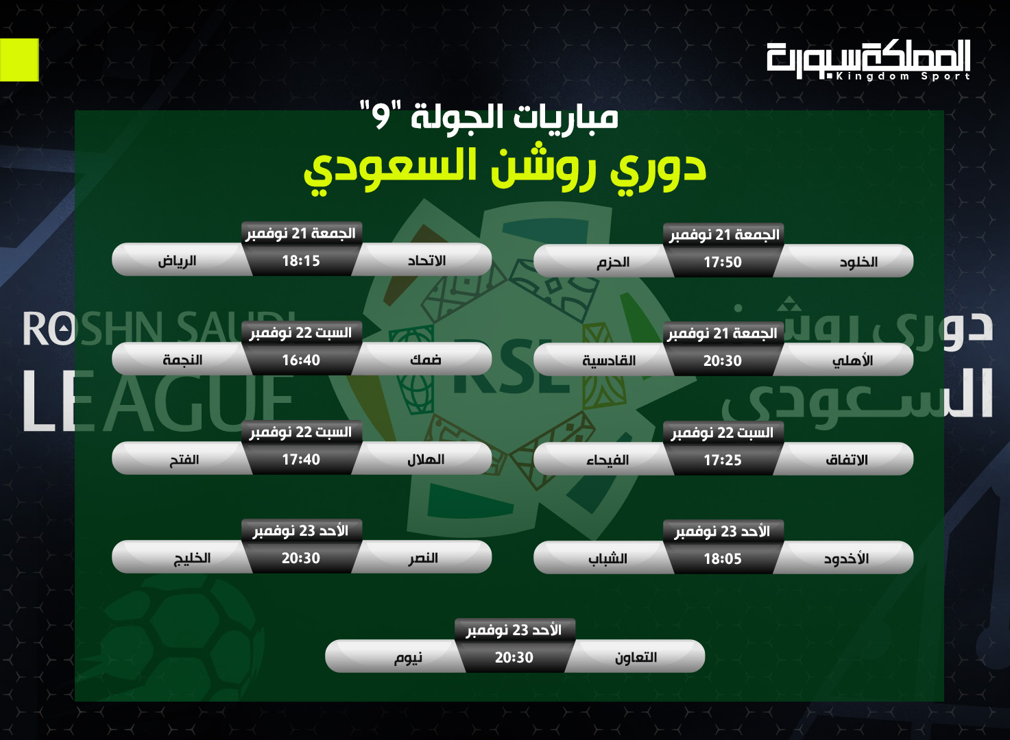 وتشهد مباريات الجولة التاسعة. صدامًا ناريًا في بعض المباريات أبرزها الأهلي والقادسية. في صراع من أجل التقدم أكثر نحو مراكز الصدارة والمنافسة.