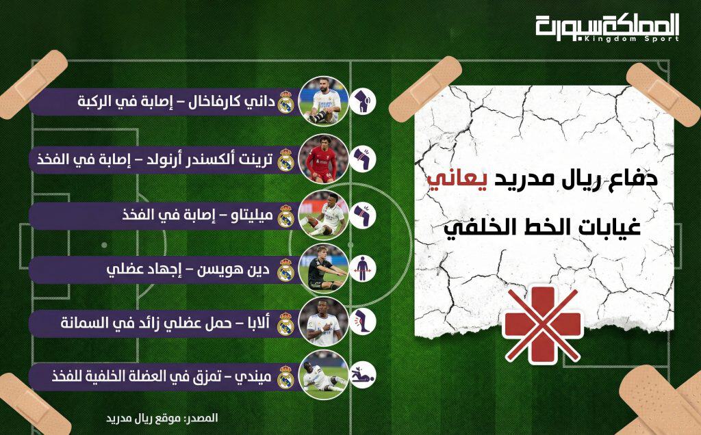 إصابة 60% من نجوم دفاع ريال مدريد